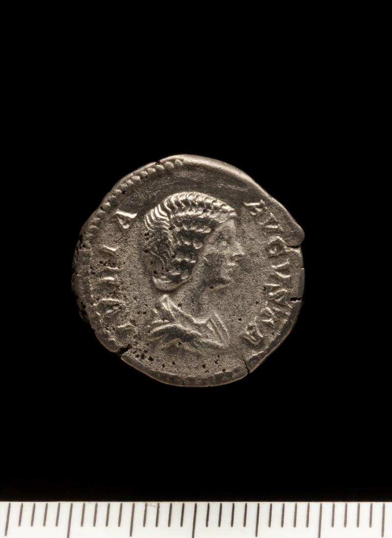 Notes: Sealed by the concrete floor of the strong room and found in it or just below it. Should "be considered as a scattered hoard or purse dropped c. 226". These nine denarii are not listed as a hoard by Wheeler.