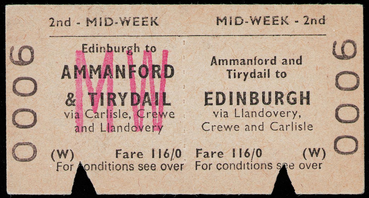 Black print on light green card. 'M' stamped in black on left hand side of ticket. British Railways (W) monthly return ticket (3rd class) - Hastings to Llanelly. Ticket number 188.