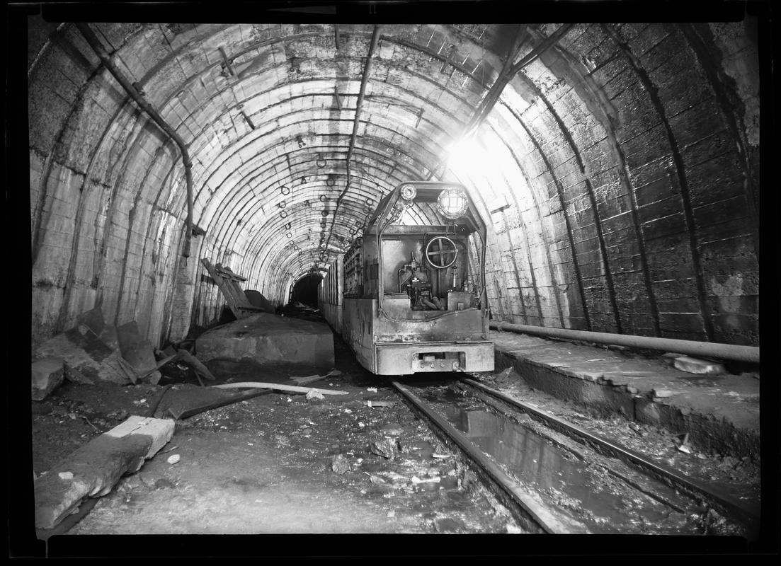 Black and white film negative showing reconstruction at Hafodyrynys Colliery, 1956.