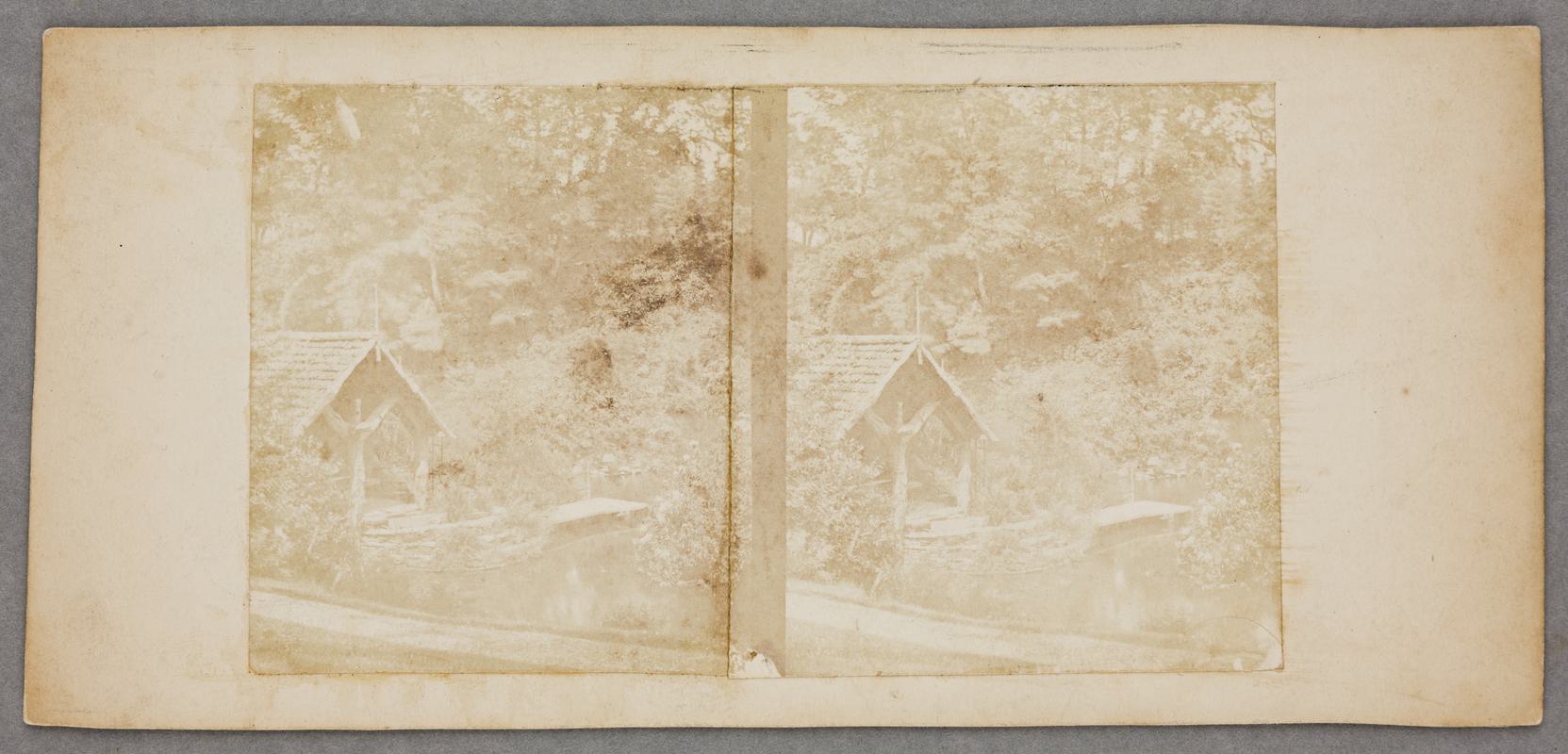 Salted paper print. View of a stone building, probably a school, with a second building to the right. It is possibly Bishop Gore Grammar School, Swansea.
