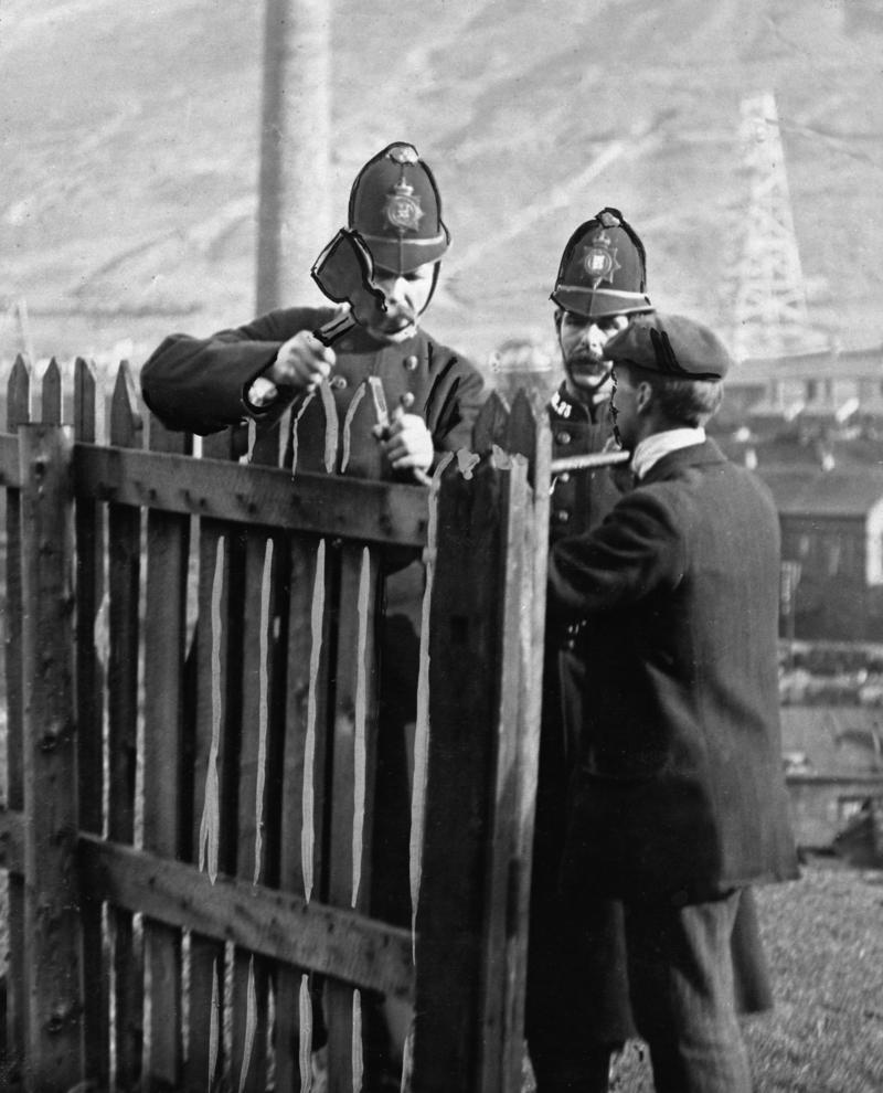 Three photographs stuck onto card. Related to the coal strike 1910?