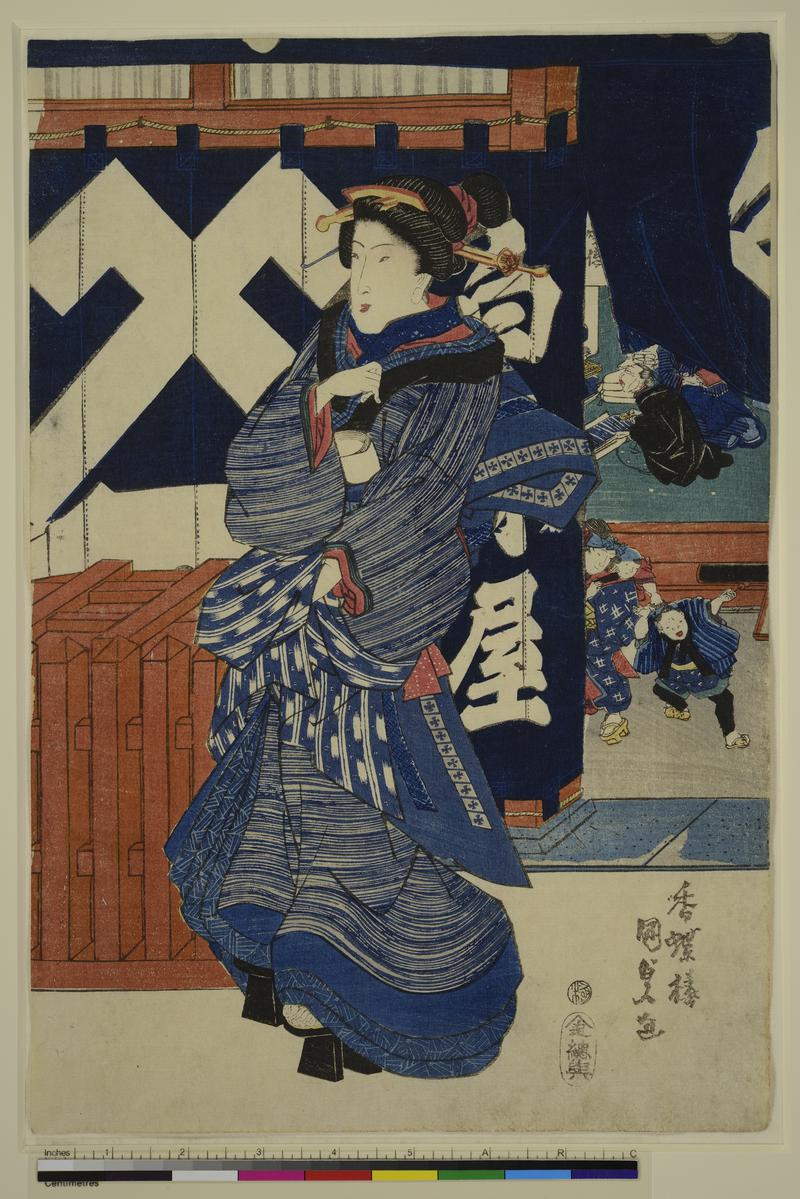 Three Geisha at the Entrance to a Textile Shop