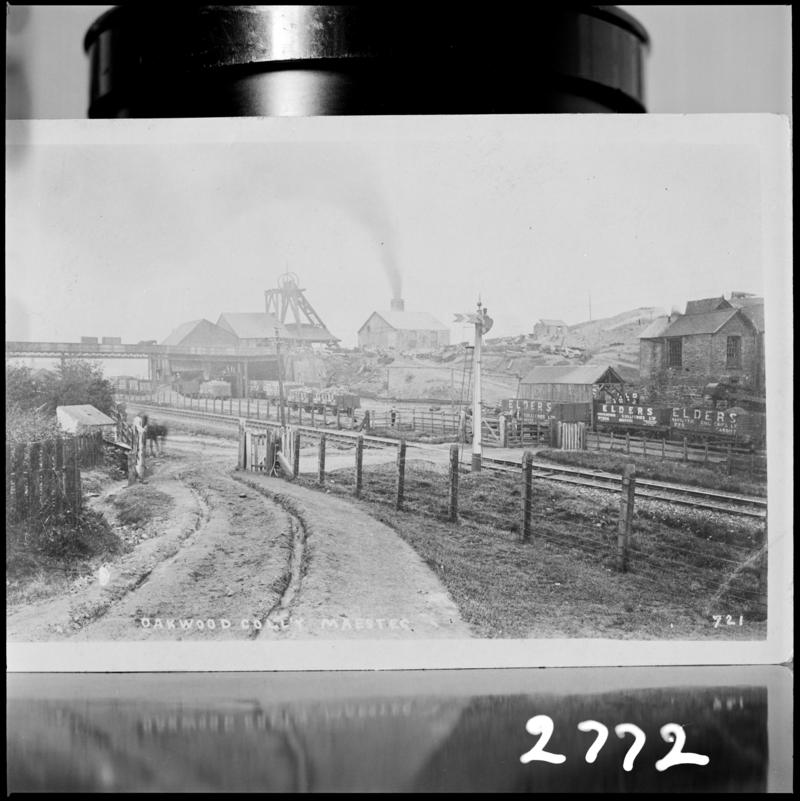 Black and white film negative showing a locomotive pulling drams underground at Abercynon Colliery.