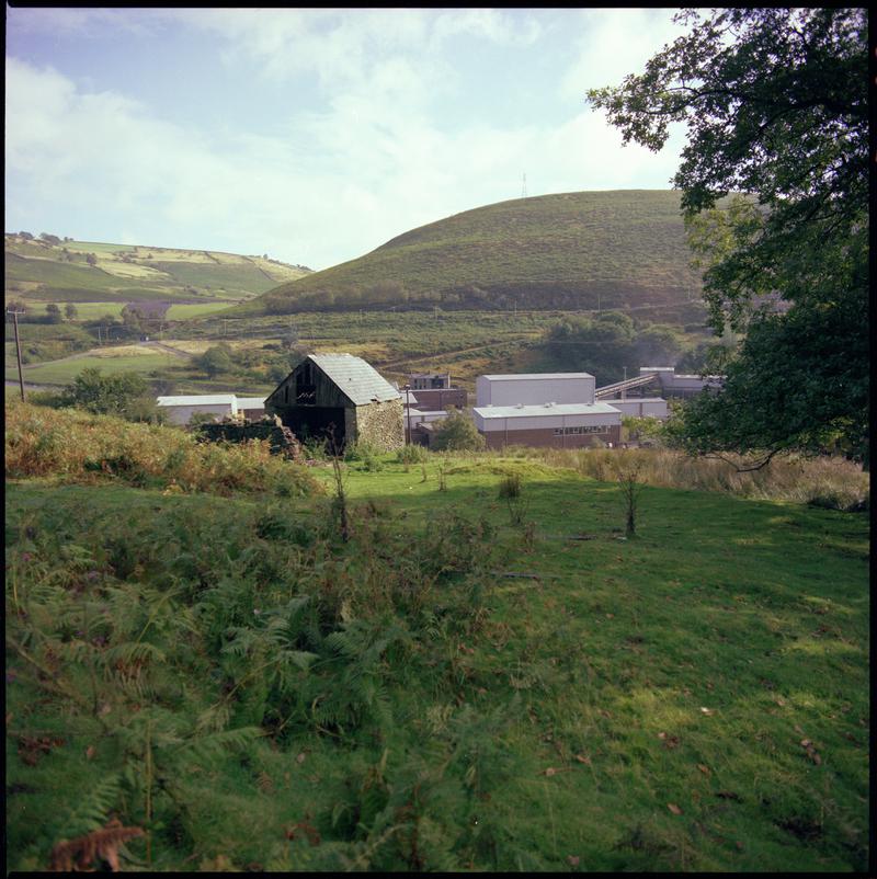 Film negative of a photograph showing a general surface view of Cymmer Colliery.