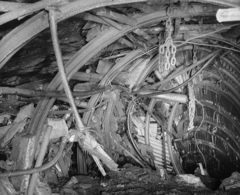 Miners Glen Johnson and Desmond George Caddy after a full day down the pit at Tower / Mardy Colliery.