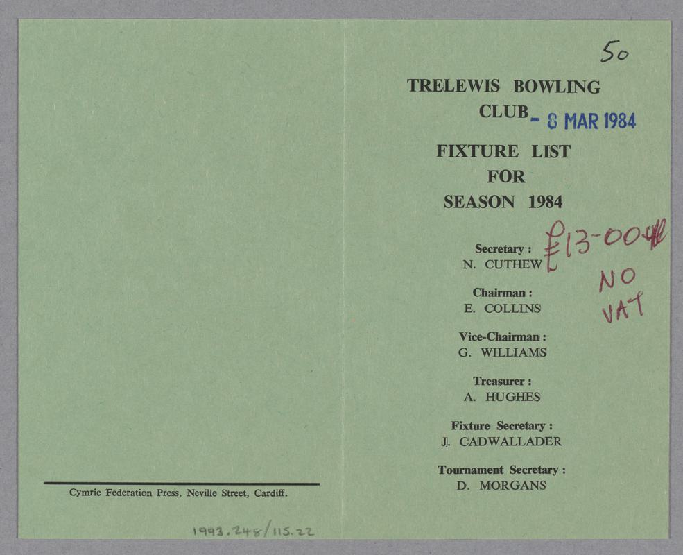 Leaflet 'Talbot Green Labour Party'. Handwritten order details on the front. Stamped with date 28 February 1983.