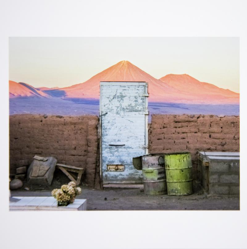 A dormant volcano in the Atacama Desert of Northern Chile is seen from a cemetery. San Pedro de Atacama, Chile