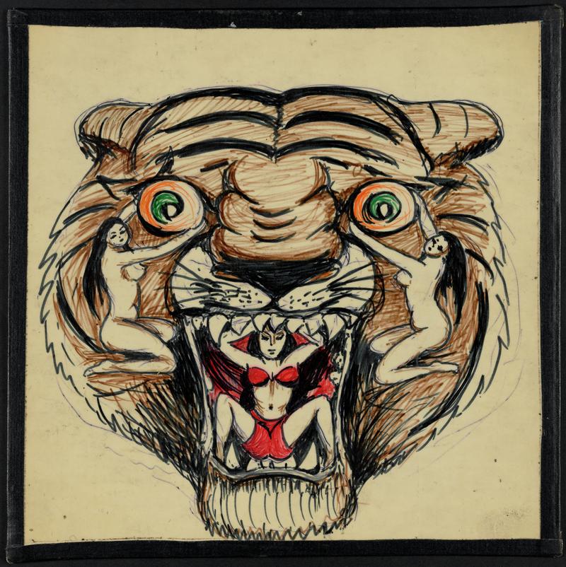 Pencil drawing on lined paper. Two swallows underneath a flower with wings.