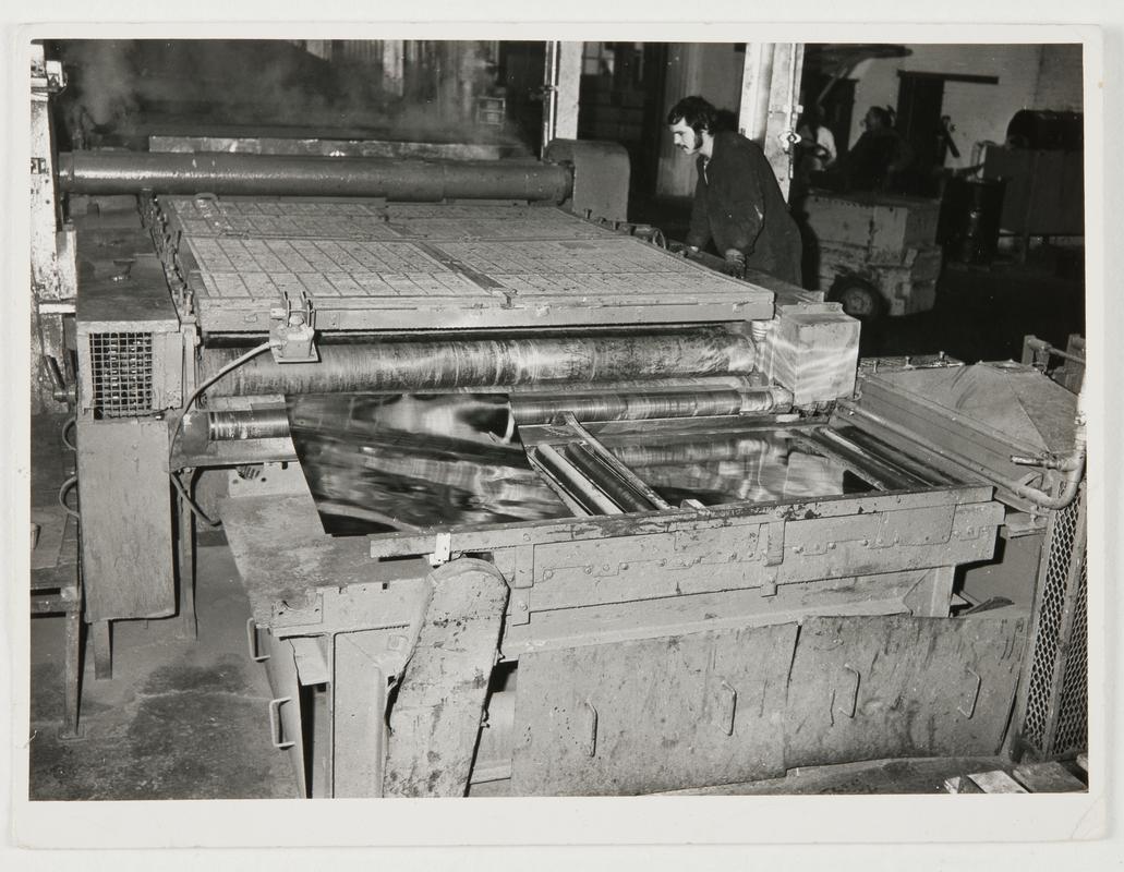Man entering sheets into tinning machine, Eaglesbush Tinplate Works, Neath.
