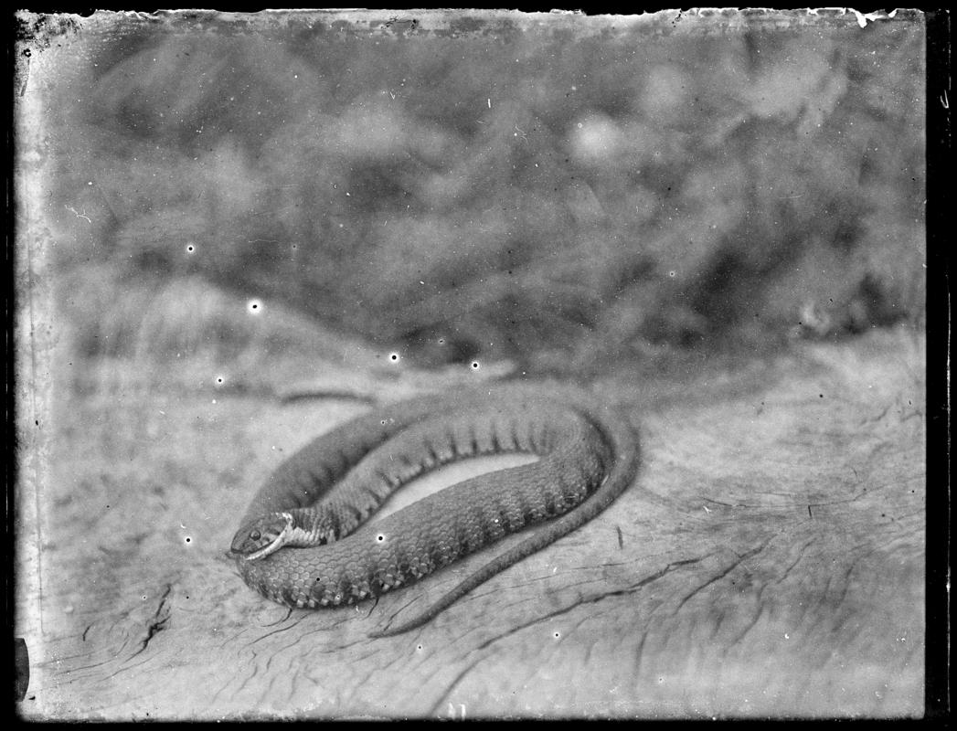 light grass hook with short wooden handle; curved blade attached to metal arm by means of screws in slots
