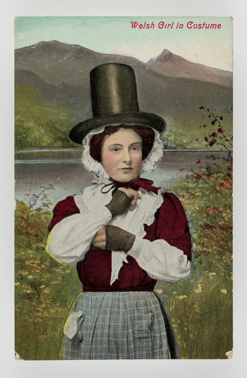 Colour postcard illustrating women in traditional costume, washing clothes by a river - "Cleanliness is next to Godliness".