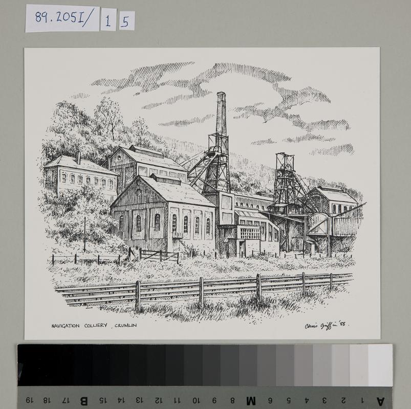 One of a set of drawings commemorating the retirement of Hugh Jones B.E.M. from The Welsh Slate Museum. Mr Jones was awarded B.E.M. in the New Years Honours in 1982.