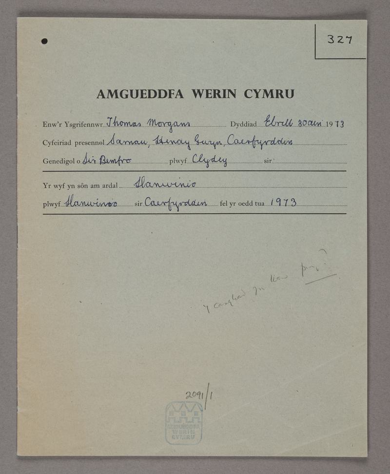 Welsh Folk Museum questionnaires and answer books Caernarfonshire