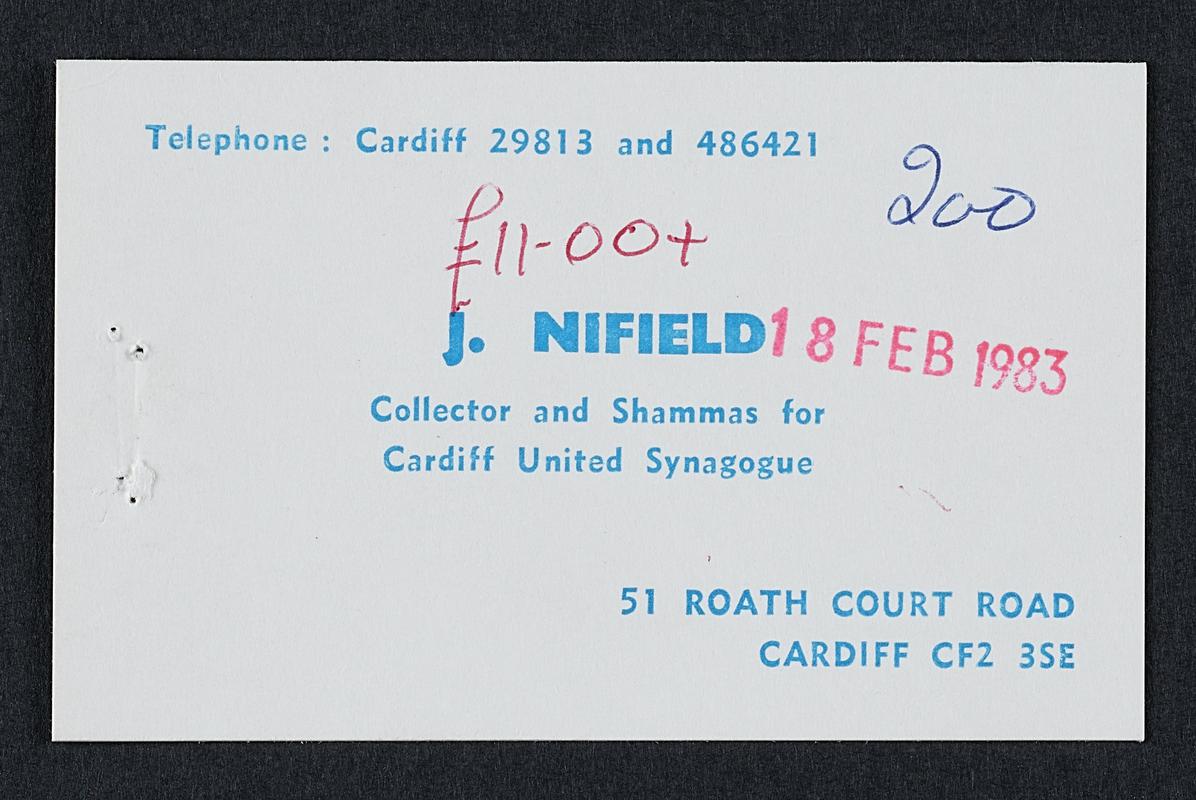 'Ely (Cardiff) Conservative Club. Lady Associate Member's Card'. Handwritten order details inside. Stamped with date 26 March 1976.