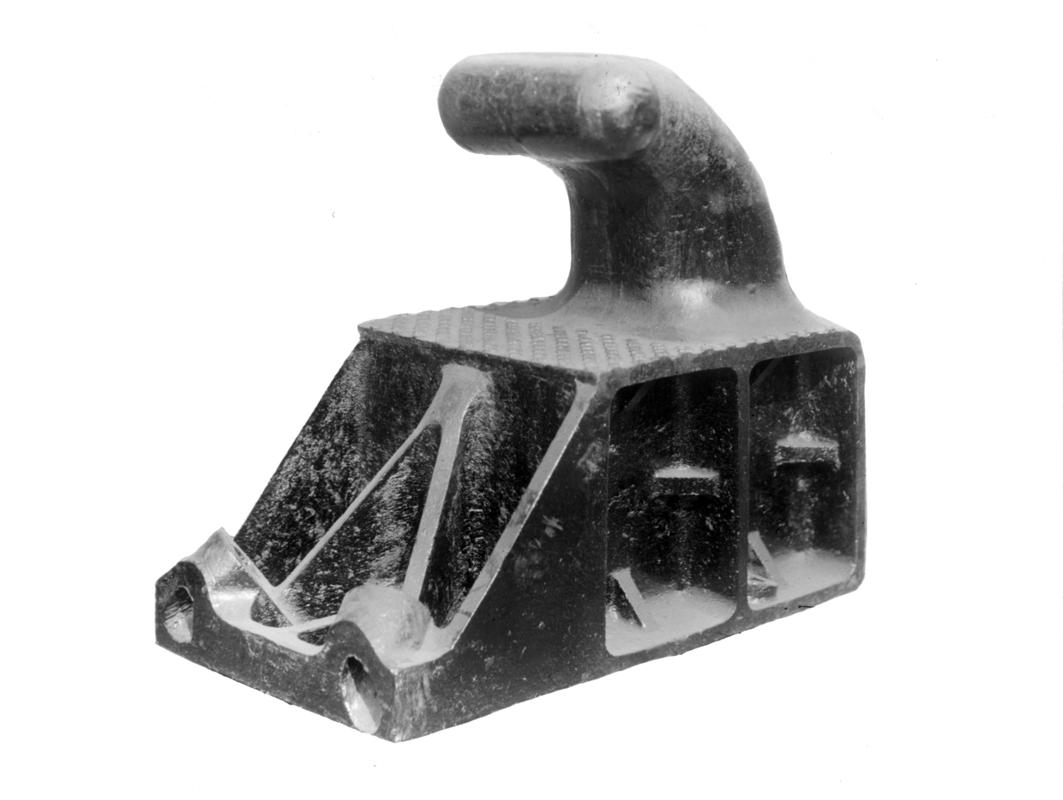 Black and white photograph of a stockless-type anchor at at Brown Lenox, Pontypridd.