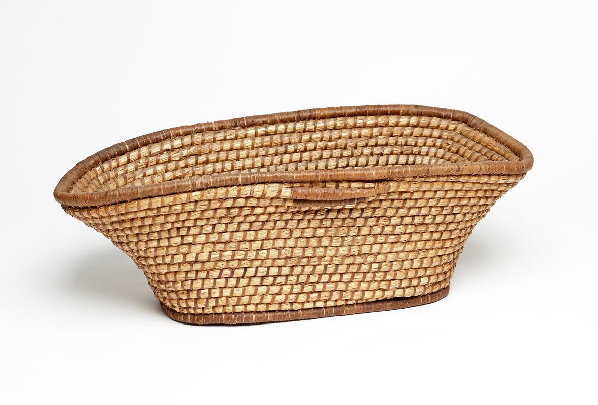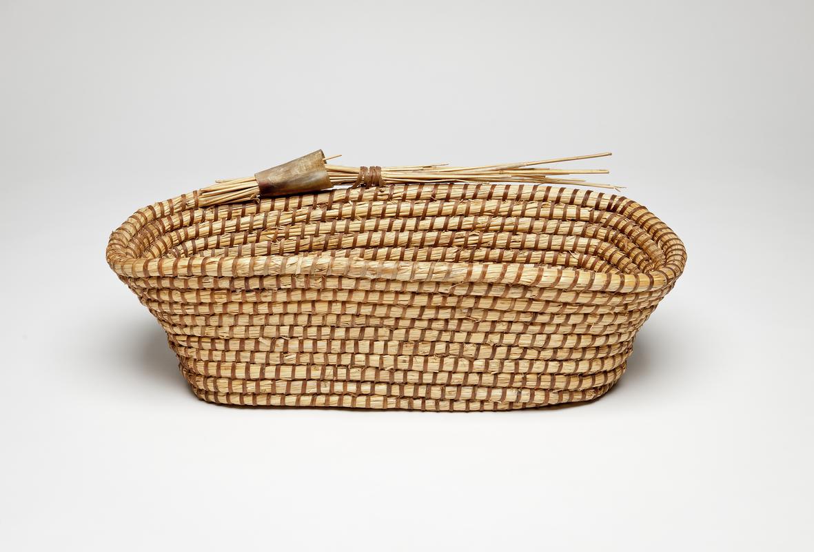This example was made by Benjamin Evans of Pen-uwch, Cardiganshire, one of the last lip-workers in Wales. This demonstrates the technique involved in making a lip work basket.