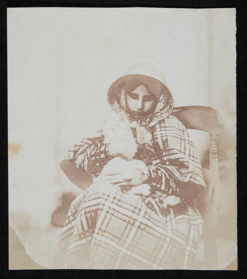 Collodion glass negative of Lucy and Elinor with basket on chair. Taken on the porch at Penllergare.