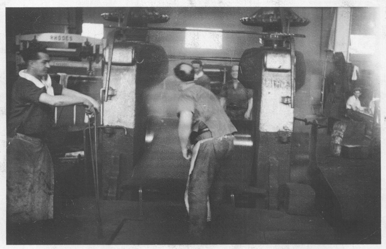 "General view of bar bank showing bars, as received from steelworks, stacked for storage." Photograph number L9473.