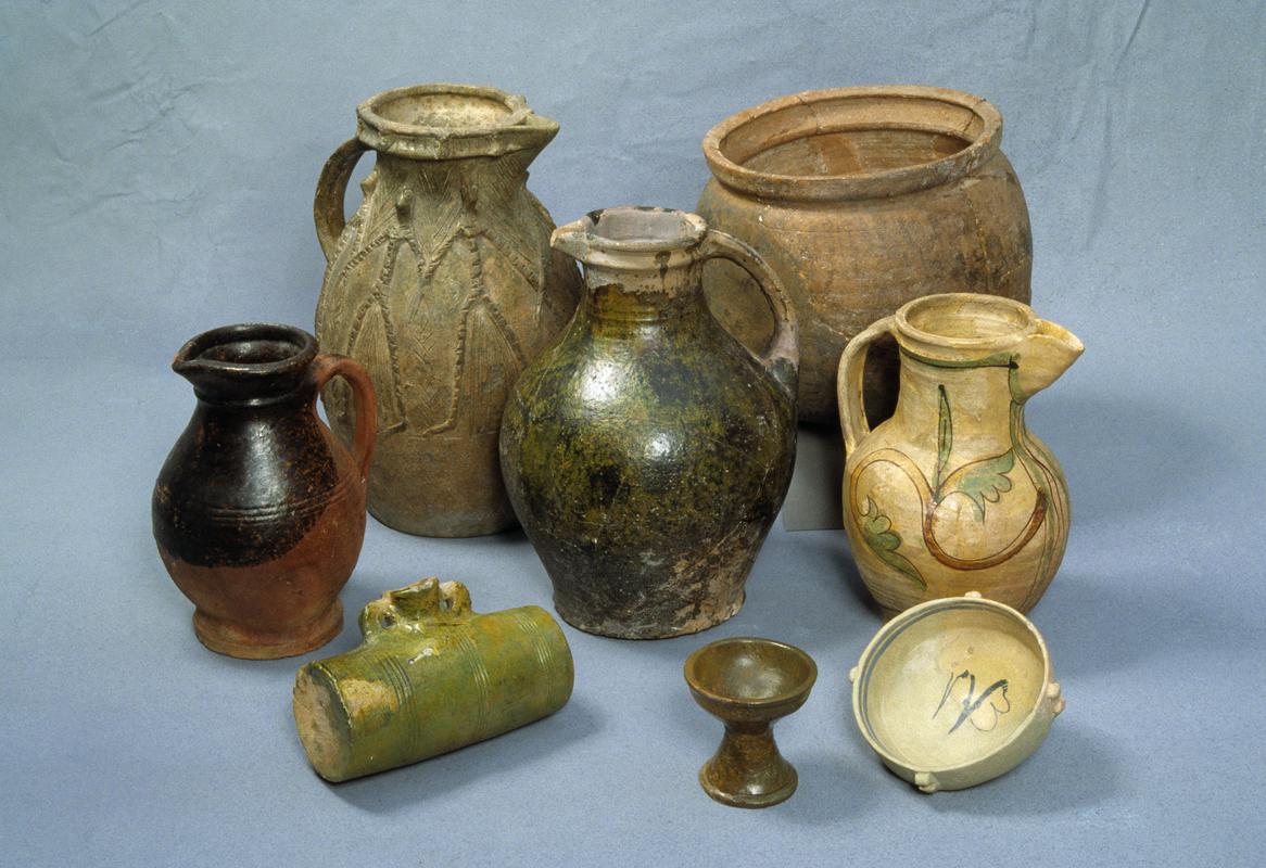 Notes: Museum records state that this jug was 'found in taking up the floor of some back office in Wharton Street or elsewhere' in the 19th century.