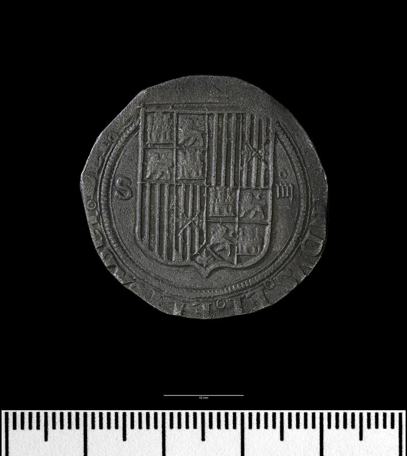 This coin is part of a collection of coins and artefacts associated with the Ann Francis shipwreck (1583).