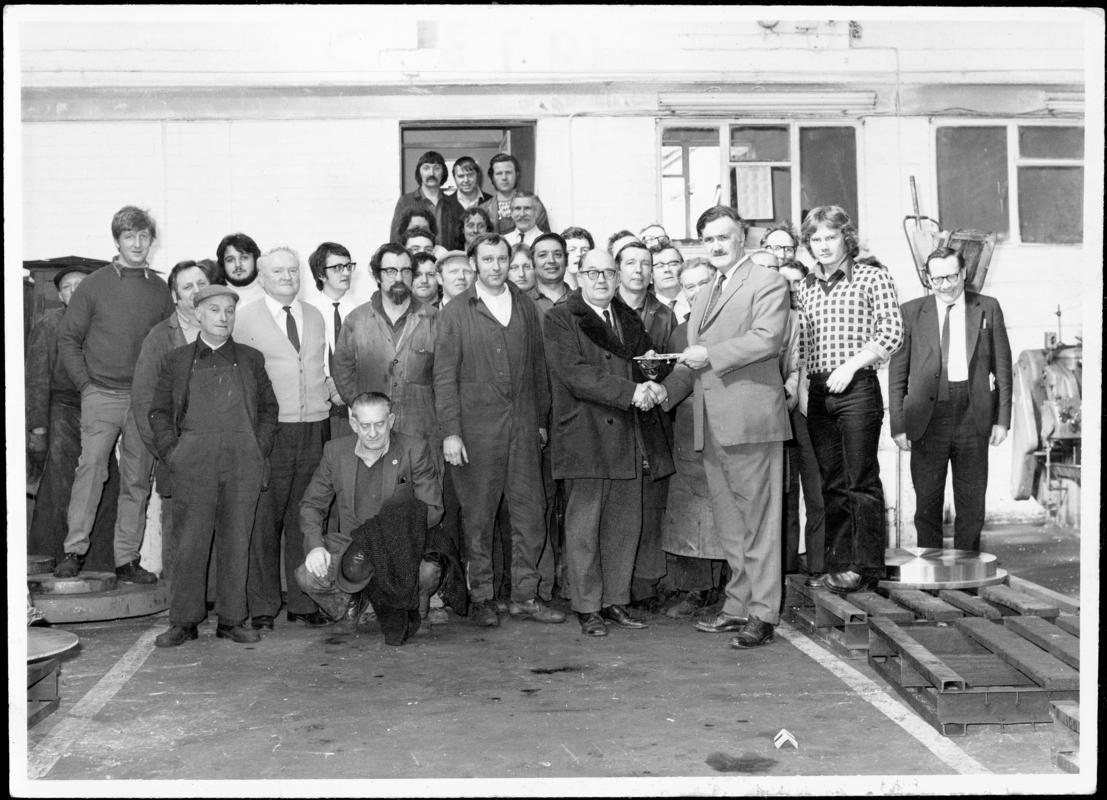 Newly installed scrap conveyor system next to the railway sidings of the new Metal Box Factory, Neath. Photographer's stamp on the back.