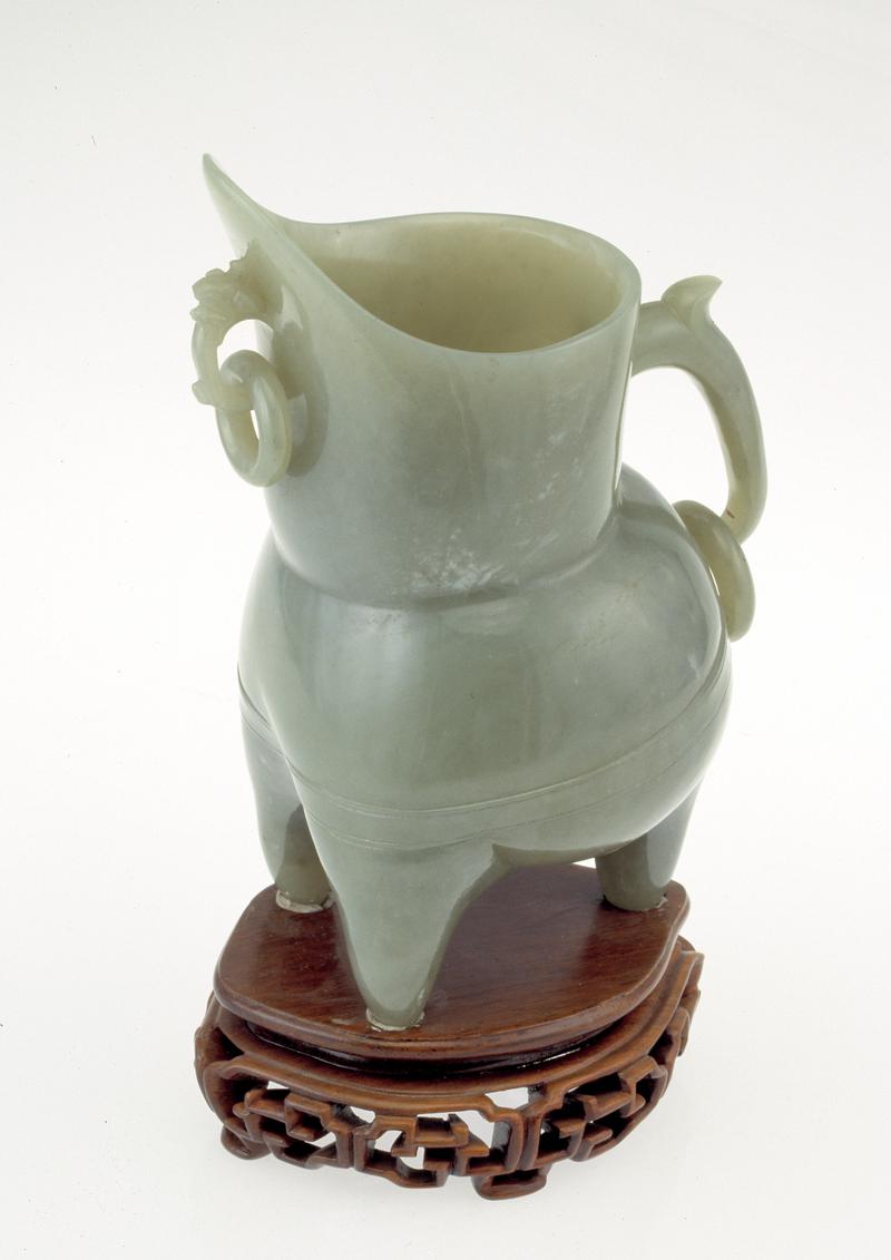 Amulet, almost circular, with holes for suspension; on the two flat surfaces are carved two stylised dragons.