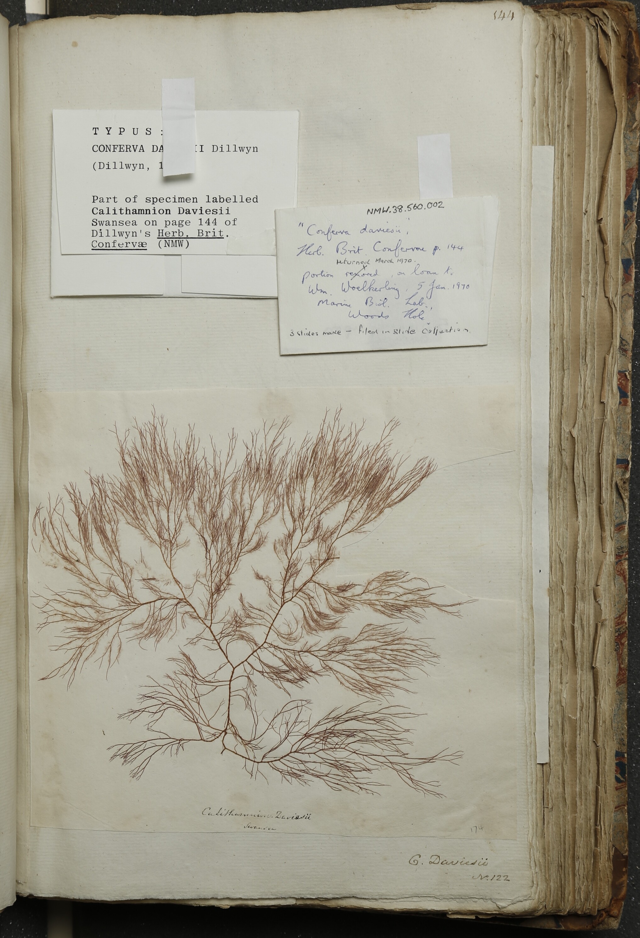 Perhaps the most important in the herbarium, is a book of marine and freshwater algae owned and collected by Lewis Weston Dillwyn . This contains type specimens – specimens on which a scientific name is based.